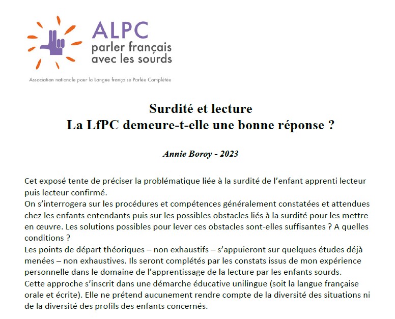 Surdité et lecture : la LfPC demeure-t-elle une bonne réponse ?