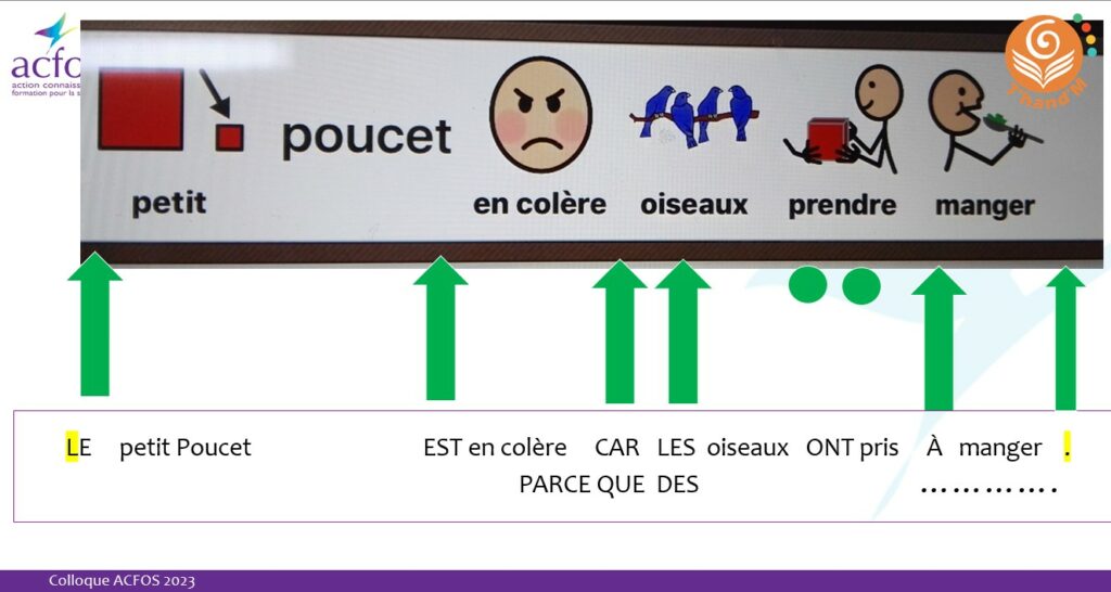 Figure 3 : écrire pour lire_ exemple d’un écrit à partir d’une tablette-pictogrammes ; diapositive présentée au colloque