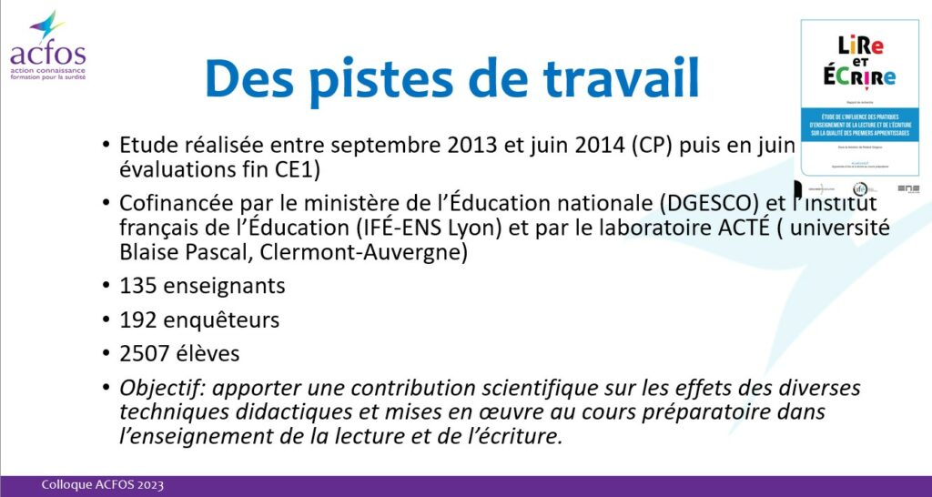 Autre piste de réflexion : l’étude menée sous la direction de Roland GOIGOUX en 2013-2014.